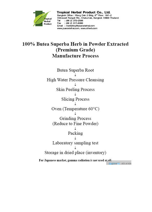 of Analysis (100% Butea Superba Herb Powder Extract)